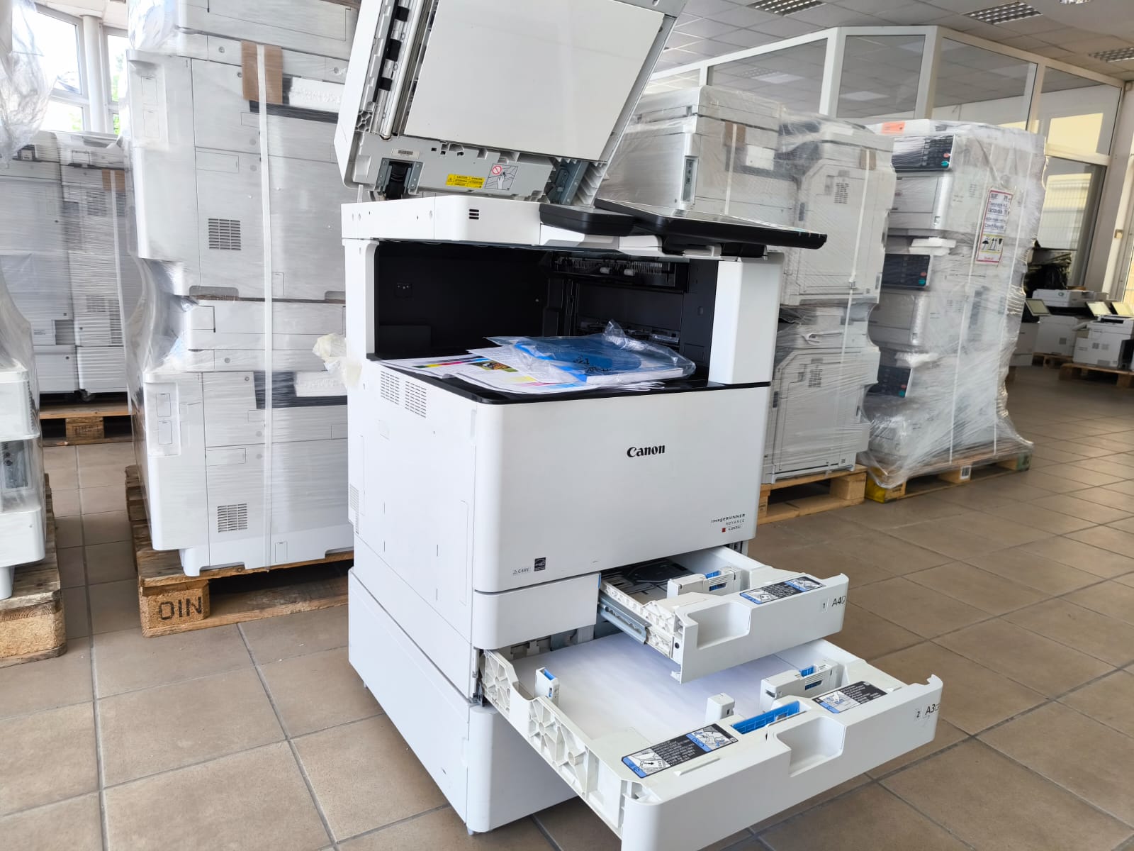 Všestranné barevné multifunkční zařízení formátu A4 s velkým barevným dotykovým displejem, rychlým skenováním a flexibilním připojením, to vše na konzistentní platformě imageRUNNER ADVANCE. Ideální pro rušné kanceláře, které hledají kompaktní řešení. Zánovní použité stroje, většinou s celkovým nátiskem od 5000 do 15 000 stran A4 v součtu. Obsahují fotoválce i originální tonery Canon se zůstatkovou kapacitou. Plná záruka 12 měsíců na IĆO, možnost pronájmu. Aktuální nabídka strojů Canon, kompletní sklad ZDE. - tiskárny obsahují originální tonery a originální válcové jednotky ve zbytkové kapacitě na dotištění (POZOR tiskárna neobsahuje nové a nepoužité originální tonery a válce) Doprava po celé ČR ZDARMA. Canon iRAC C356i