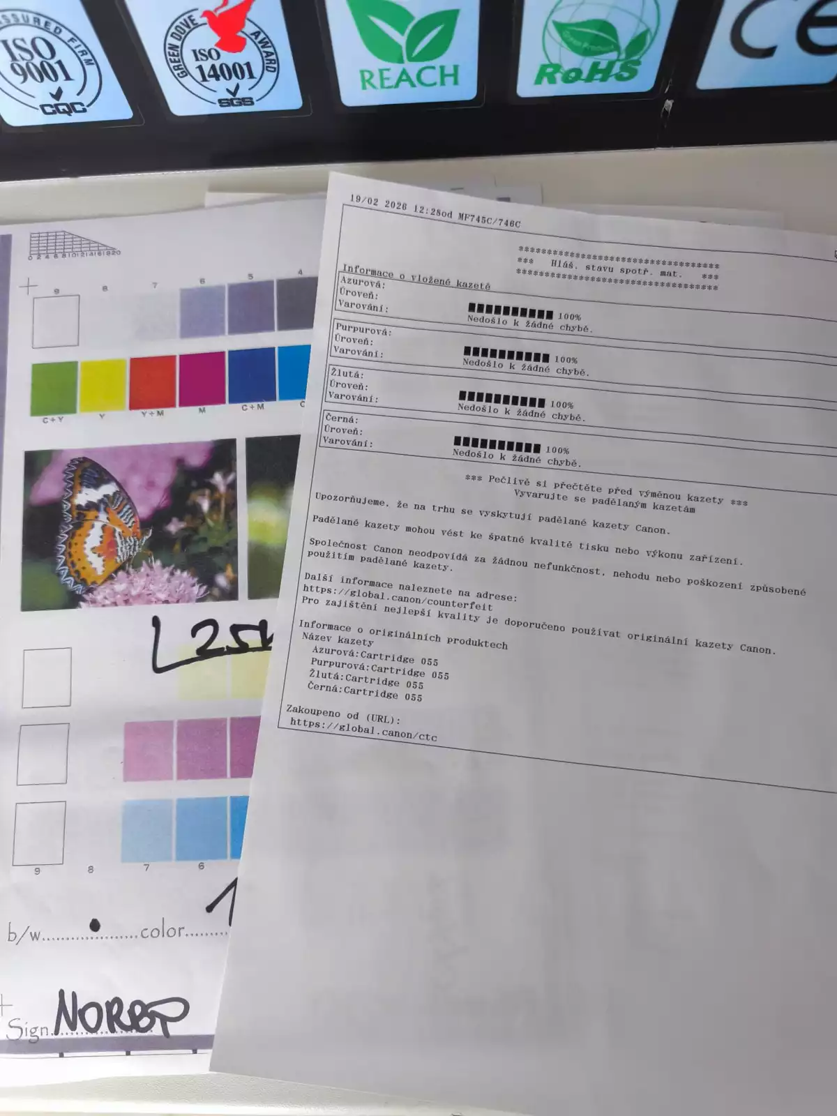 - tiskárny obsahují originální tonery a originální válcové jednotky ve zbytkové kapacitě v provedení 055- (POZOR tiskárna neobsahuje nové a nepoužité originální tonery a válce)